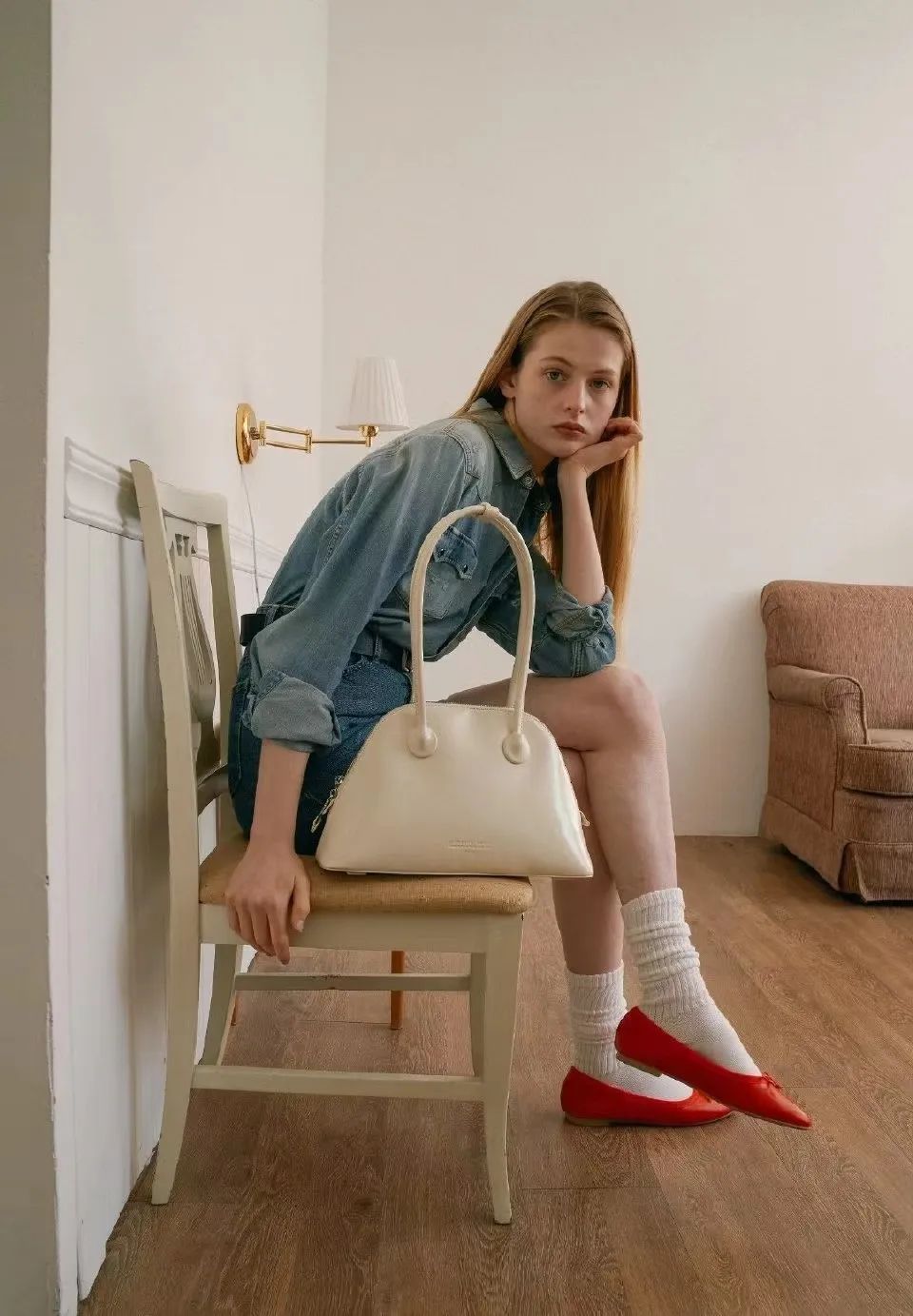 鞋子可以选择红色芭蕾鞋,小面积撞色更出彩。▼