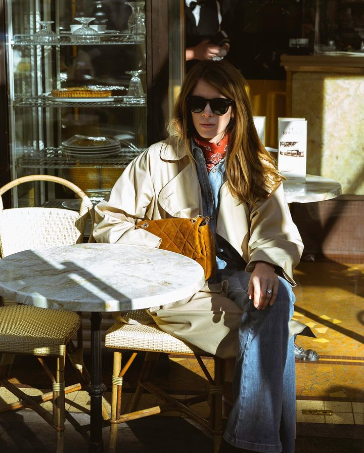 珍珠项链还可以和丝巾叠戴。法式博主Camille Charrière▼