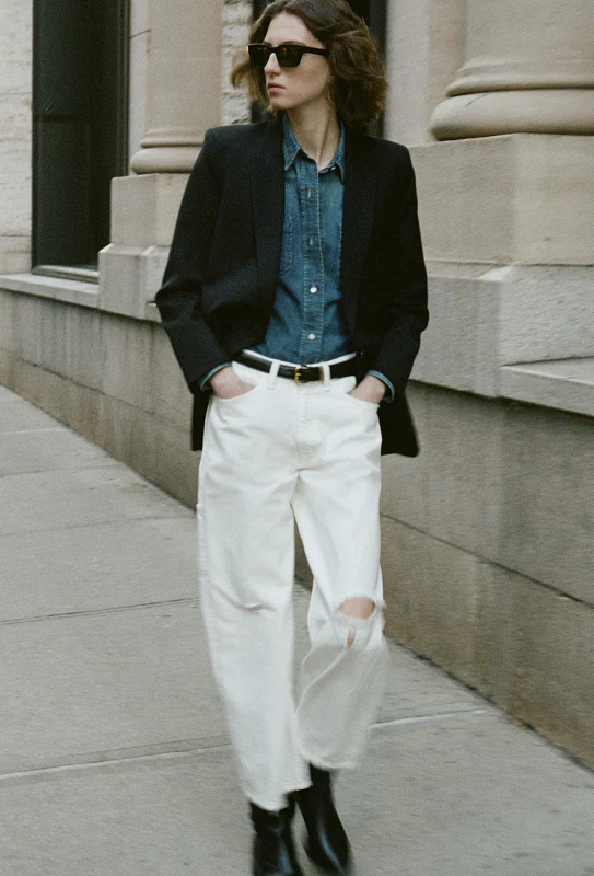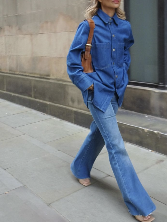 说到牛仔衬衫,很多人都条件反射般地搭配蓝色牛仔裤。