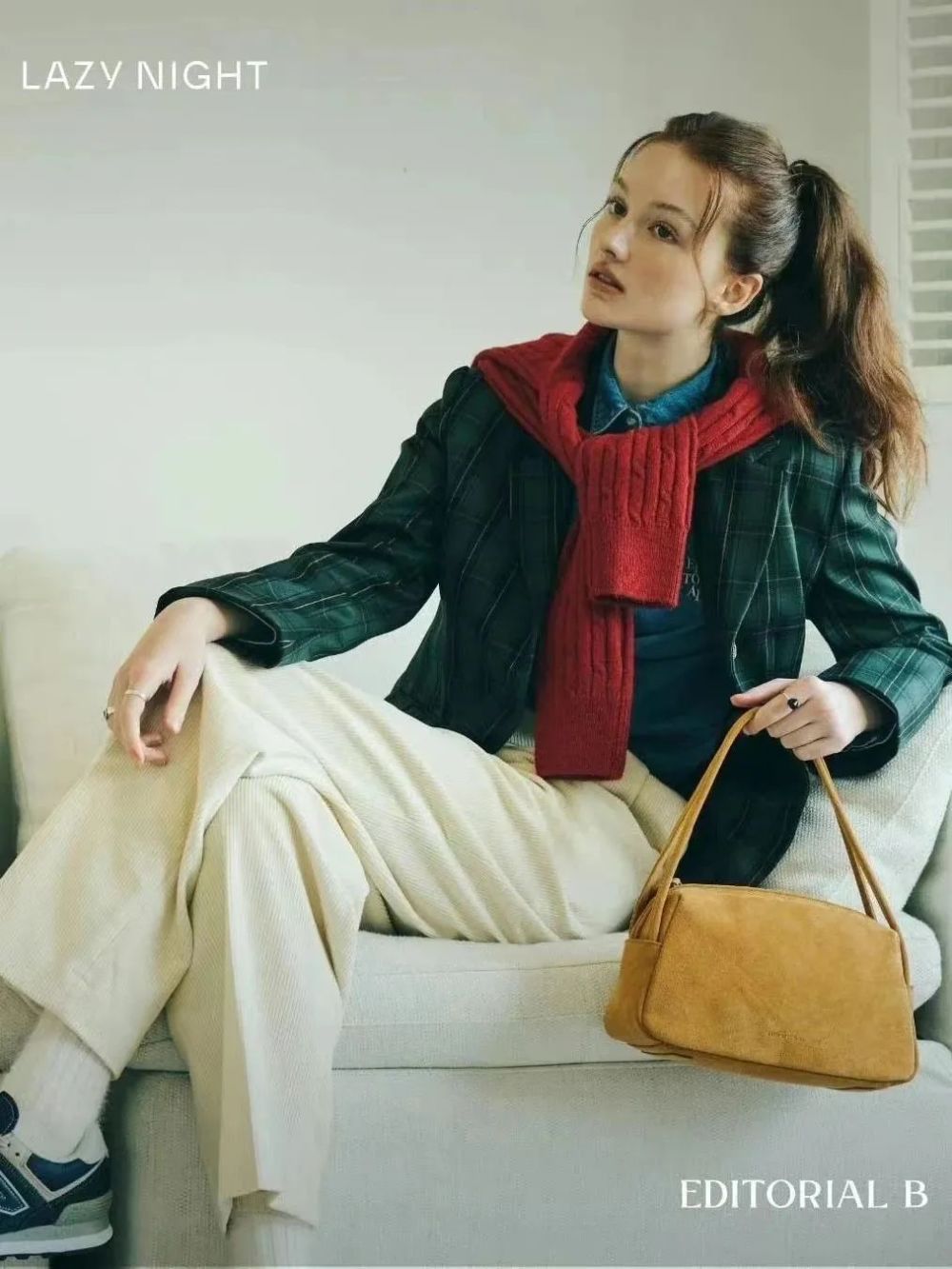 几个加分配饰:红色领巾、麂皮单品、手表、眼镜、珍珠项链