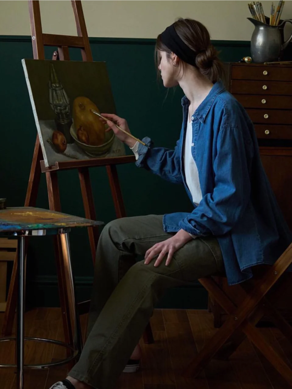 像这种基础衬衫的版型,本来修饰身材、体态的效果就不错,牛仔衬衫的面料会更加厚实挺括,对于肉肉身材、驼背星人都很友好。▼