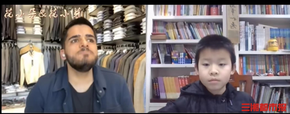 (弟弟“花小芽”和外国网友连线。(视频截图))