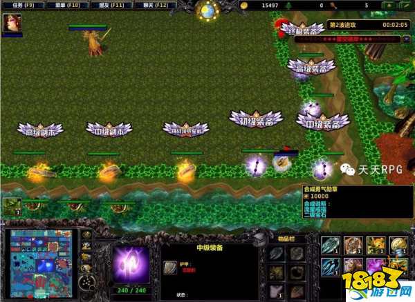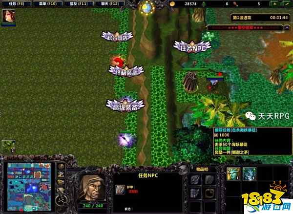 当我们的装备提升到“中级装备”的时候,也就是将新手装备成功提升2次之后就可以使用人物的“传送”技能传送到基地右边的“任务NPC”接取两个任务来完成。