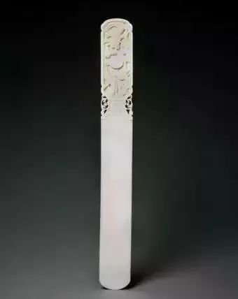 此笔乃清代制作,笔身光素无琢饰,质莹润,色和谐,突出了玉材的自然之美。