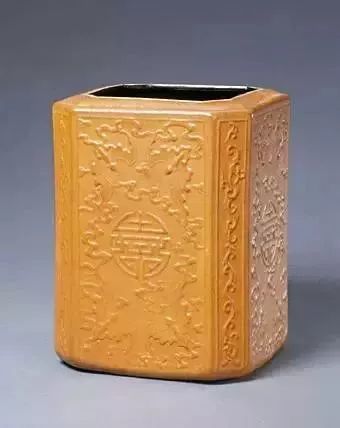 匏制云蝠捧寿纹方笔筒 清乾隆