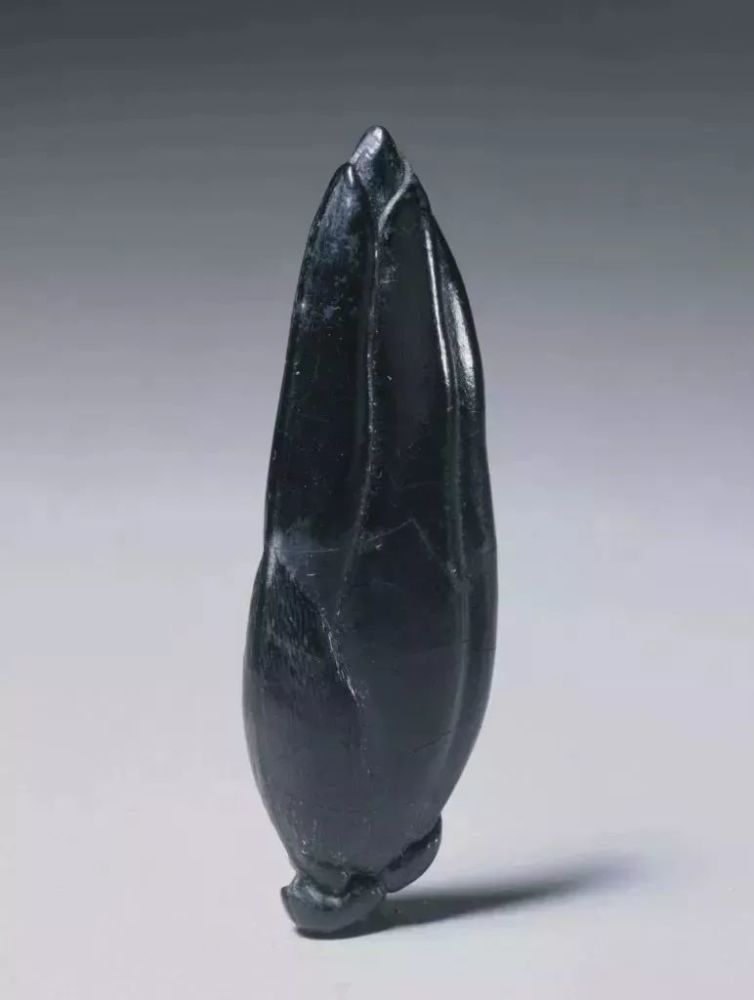 墨圆雕作玉兰花苞形,造型逼真,柔美中孕育着绽放的生机。一枚花瓣上镌“长吉”篆文小印。