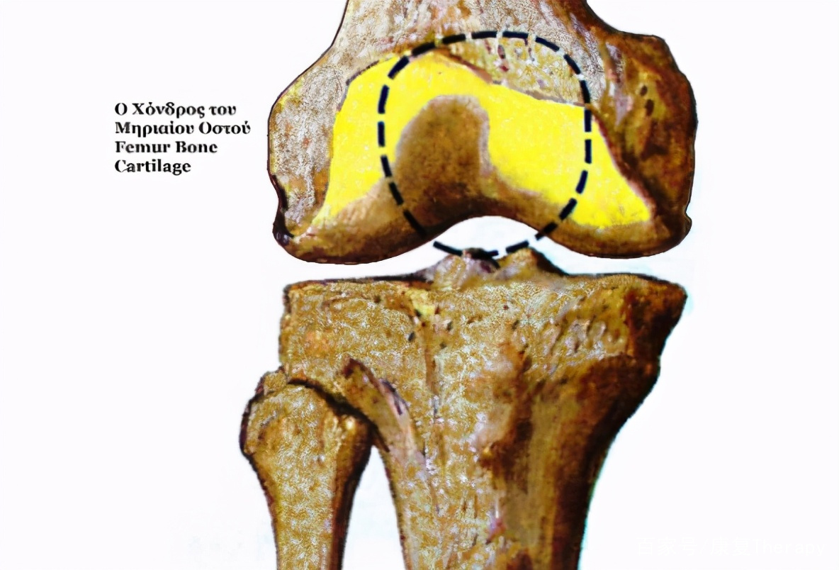 而髌骨的软骨就更简单了,其实就是髌骨上面的一层软骨,但是跟其他软骨一样都是面向关节里面的,所以髌骨软骨也是面向大腿骨(股骨)的。