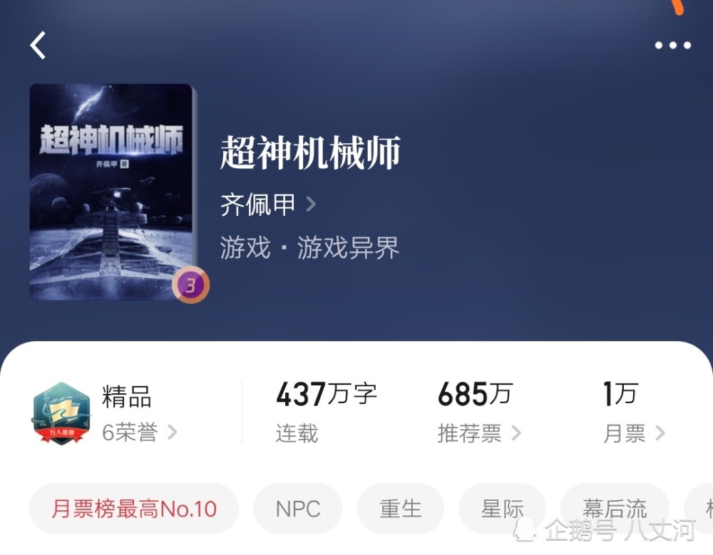 大家好,这里是八丈河推书。每天推荐精彩好看的网络小说和网文资讯。今天推荐五本点击量破亿的网络小说,每一本都是经典,你都看过吗?