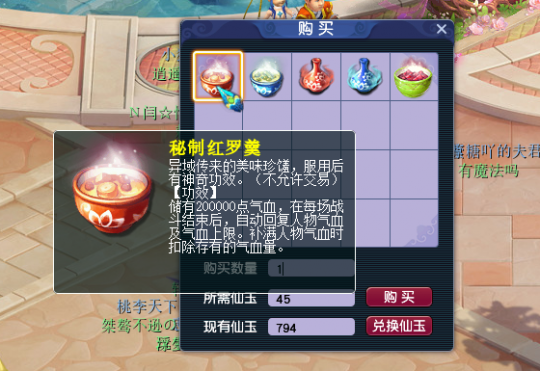 一份秘制红罗羹可以储存20W点气血,30个就是20W×30=600W气血。就冲这个数值,猪队长全程开秘制,挂机一年都不是问题!不过,各位小伙伴也不用担心,本次积分活动会持续到3月14日,游戏截止日为3月28日,还没有买新春锦衣的小伙伴如果有意向的话,也可以去试试运气!