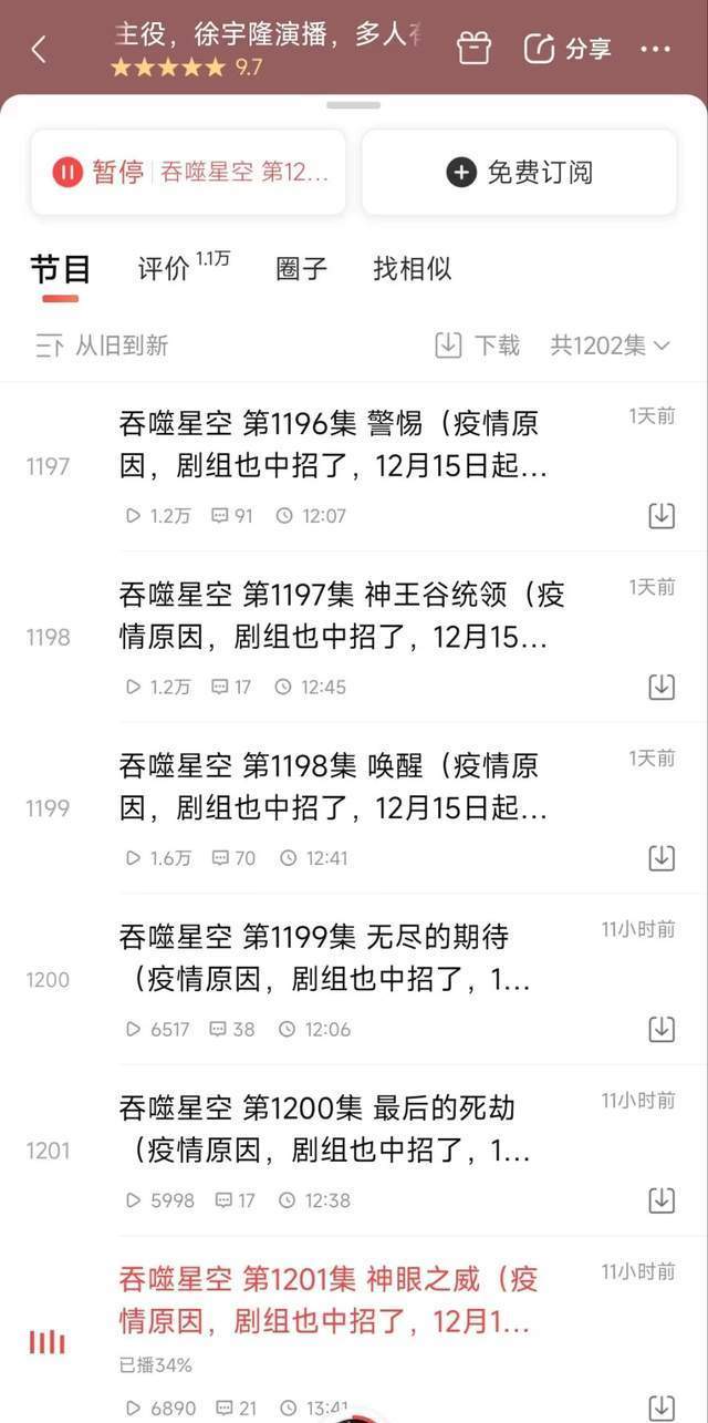 14、吞噬星空有声剧因疫情原因暂停更新