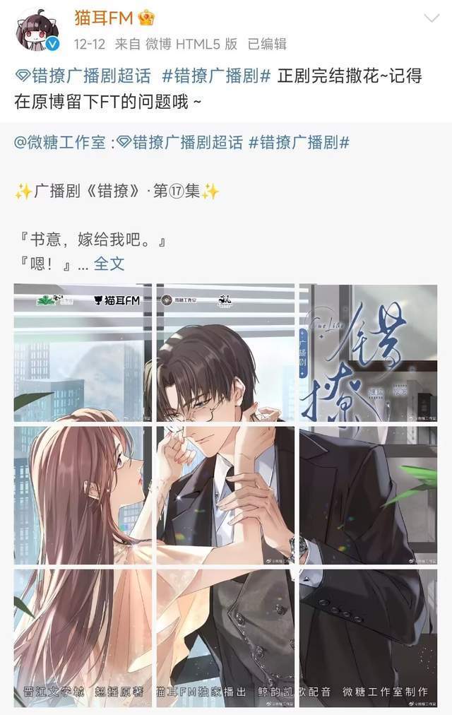 13、在猫耳FM上连载的(错撩)有声剧完结,电视剧目前正在拍摄中