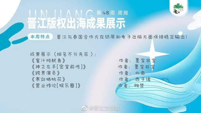 7、晋江版权出海第48周,五本网文出口泰国