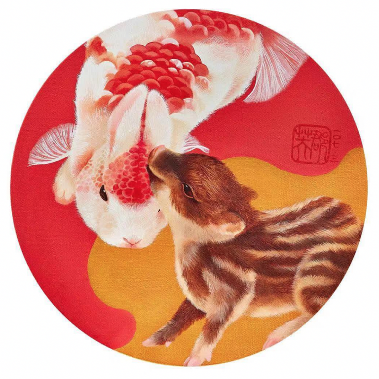 ?陈妍希社交头像 一只猪和兔子化身为鱼旋绕在一起,而猪和兔分别是陈妍希和陈晓的属相