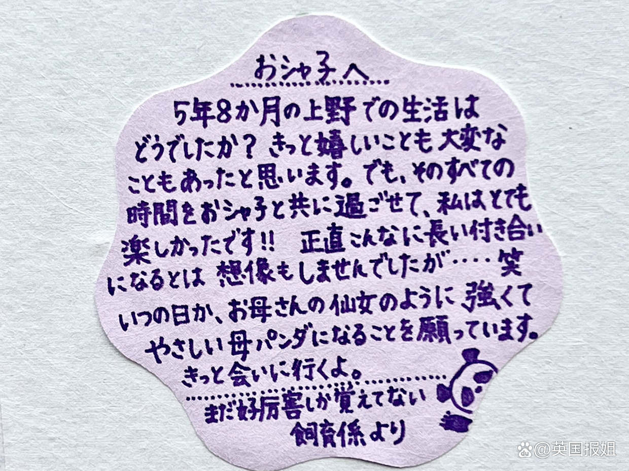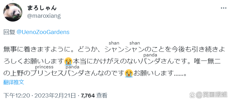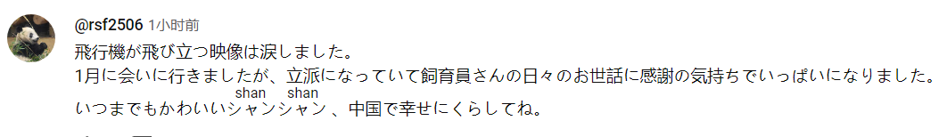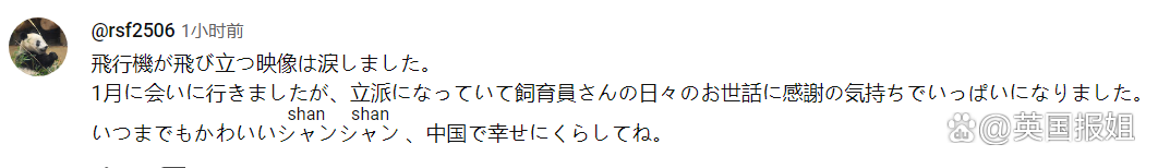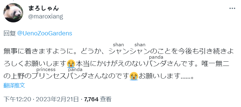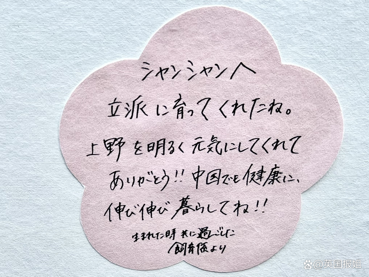 “祝香香一路平安!希望之后也能一直看到香香的消息,她真的是只独一无二的熊猫,是上野动物园永远的公主...”