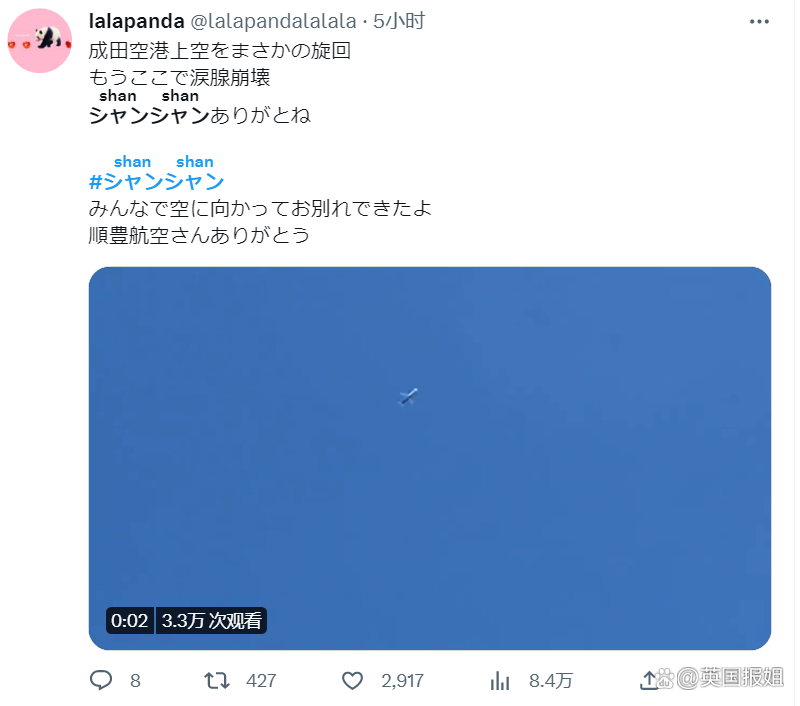 不止是送车,深爱着香香的粉丝们还带着各种香香的周边追到了机场,在飞机起飞的瞬间,他们对着天空拍下航班离开的样子,和最爱的熊猫挥手再见。