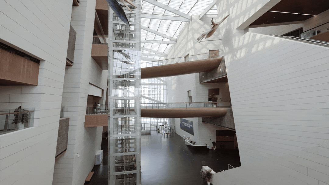 在某些区域,建筑仿若拔地而出,展露出内部的公共空间,同时维持其锚固于大地的坚实感。每个“山体”,或者说巨大的“石块”,被转化为了不同的展览空间,并通过充满阳光的公共空间加以区隔与串联。