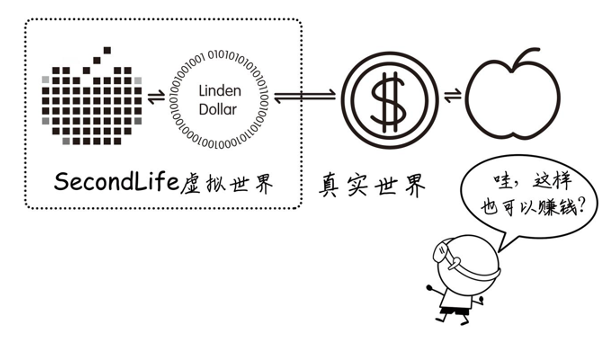 在第二人生的虚拟世界中,它改变了之前那些简单的交易行为,出现了一种虚拟货币:Linden Dollar。使用这种虚拟货币,可以对虚拟世界中的虚拟物品进行买卖。