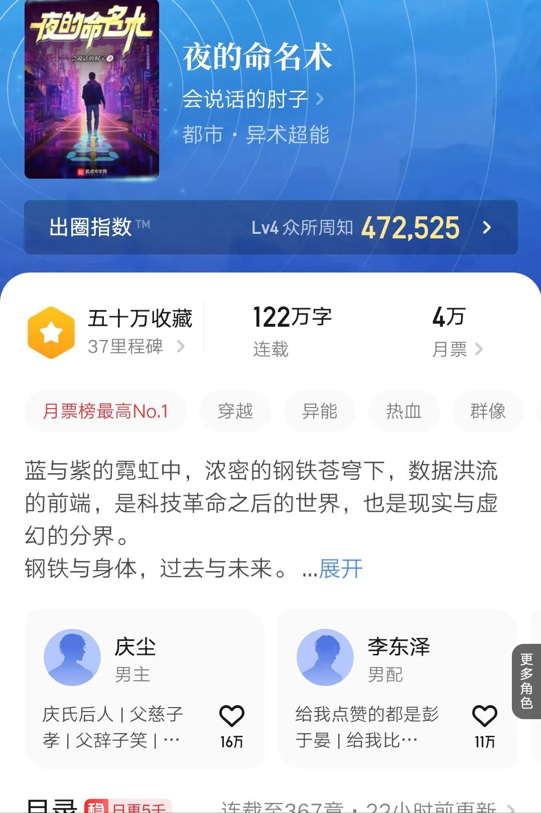 手机访问:wap.265xx.com会说话的肘子迎来新的巅峰,《夜的命名术》打破起点多项历史纪录