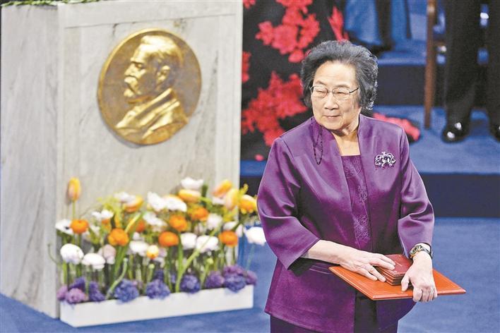 ▲2015年12月10日,在瑞典首都斯德哥尔摩音乐厅举行的诺贝尔奖颁奖仪式上,中国科学家屠呦呦领取诺贝尔生理学或医学奖。