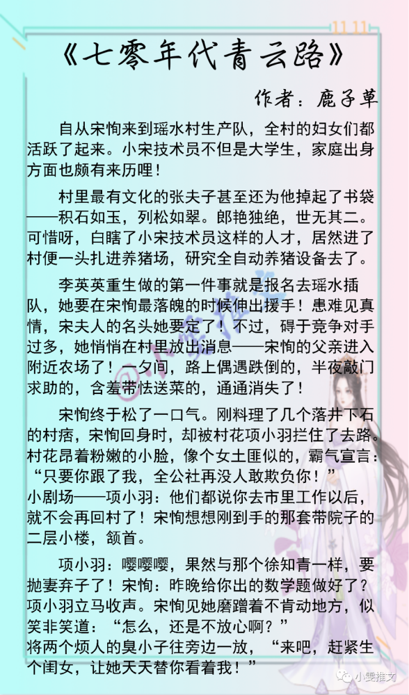 手机访问:wap.265xx.com4本年代文《穿书七十年代吃瓜群众的自我修养》《七零年代青云路》《六零嫁海归》《七