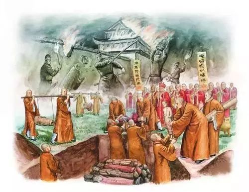 武宗在位时,任用李德裕为相,对唐朝后期的弊政做了一些改革,但他最为人垢病的是崇信道教,在道士赵归真的极力鼓动和李德裕的支持下,从会昌二年(842)起开始下令拆毁佛寺,并派御史分道督察,至会昌五年(845)达到高潮,全国拆毁寺院共4.46万余所,强令还俗僧尼26.1万人,奴婢15万人,没收大量寺院土地,史称“会昌法难”。