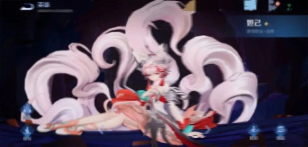 虽然图片模糊但是完全挡不住这款皮肤的超高颜值!背后九条蓬松的粉白色尾巴尤其抢眼,白发搭配红白色华服,整体风格十分日式。
