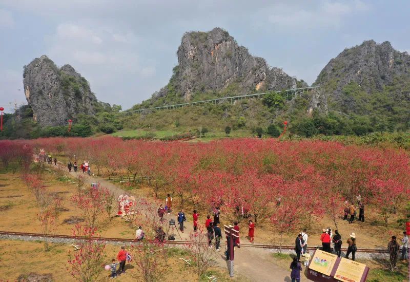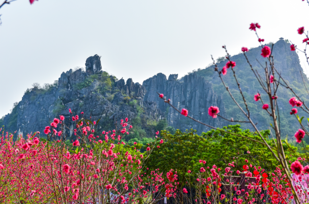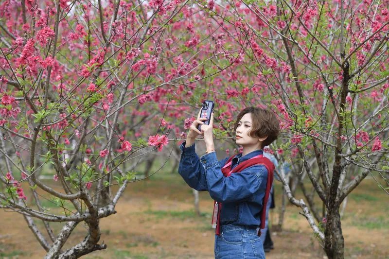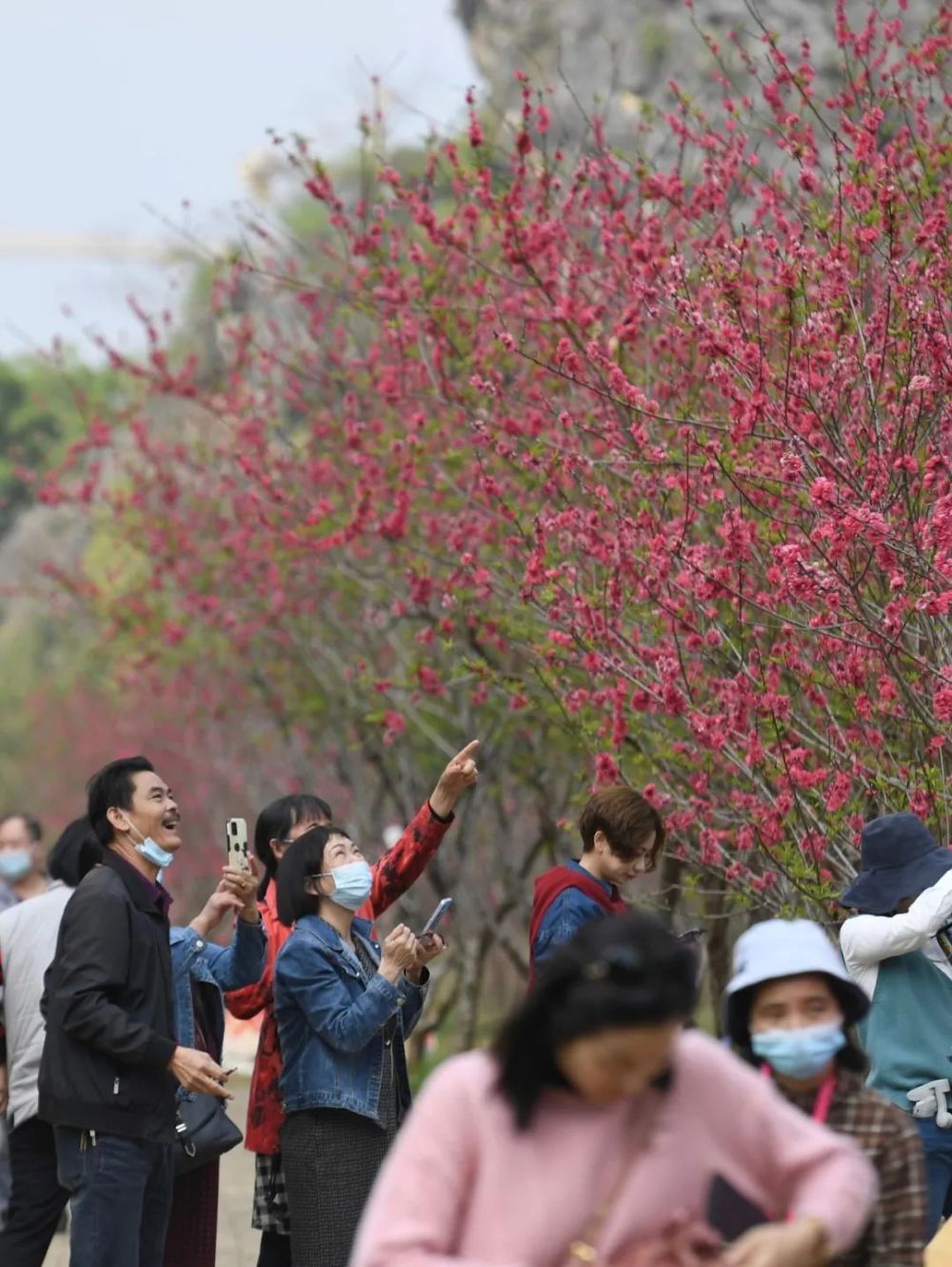 烂漫的桃花一朵紧挨一朵,挤满了整个枝条,深红伴着浅红。从春城前来的冯女士笑着跟记者分享着游览心得?“今年的桃花开得比往年更加漂亮了!我们第一站赏桃花!体验完春湾石林的玻璃栈道,再到龙宫岩里转一圈!”