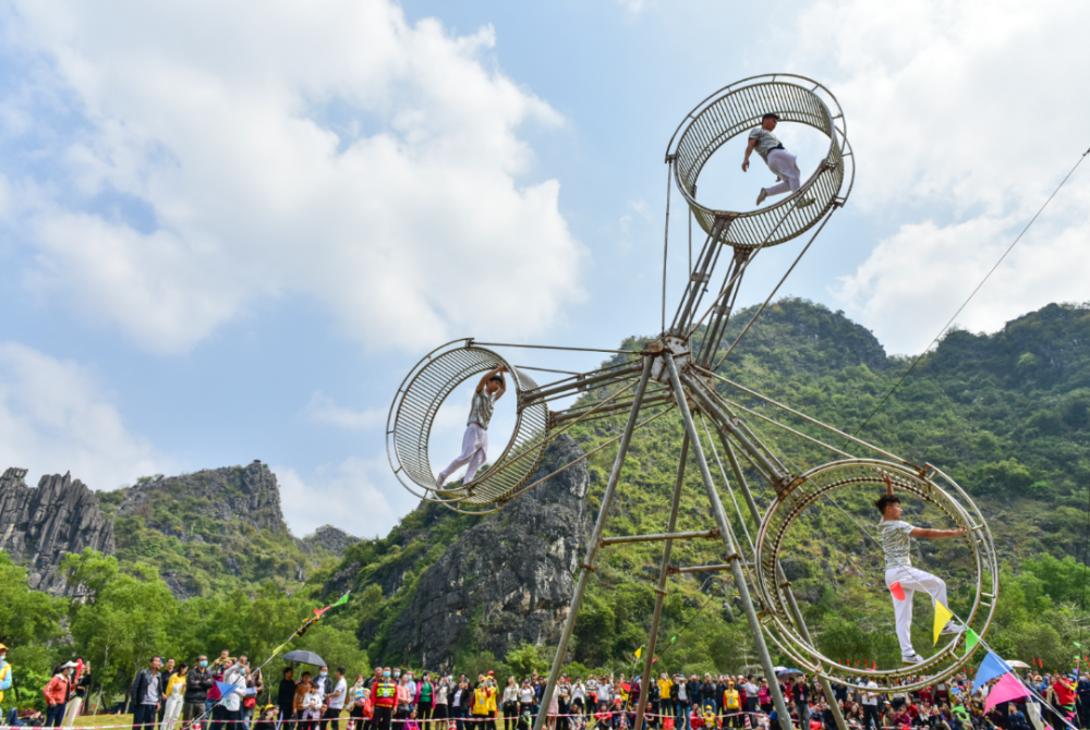 游人边走边看,流连忘返。据悉,本届桃花节还推出了特色美食节和杂技表演,游客在观赏桃花之余,还可以品尝地道的特色小吃,以及精彩绝伦的环球飞车、小丑互动等杂技演出。