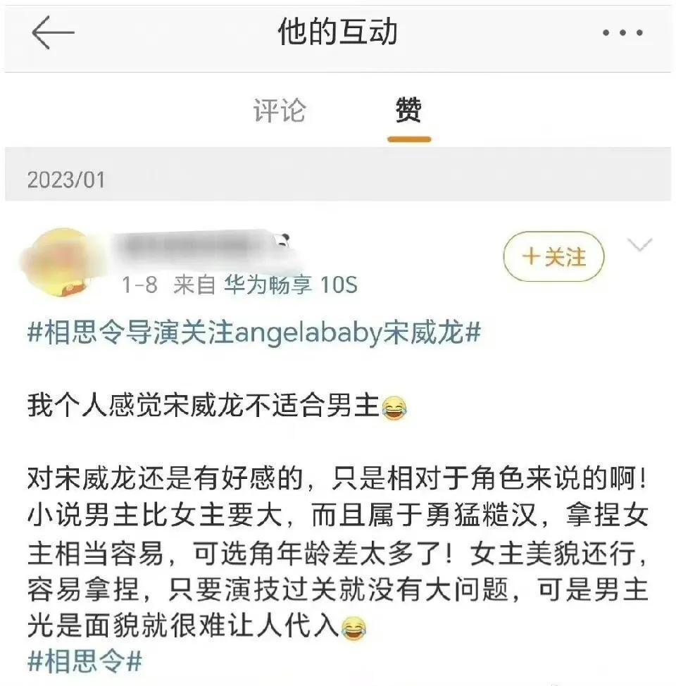 不过,还未正式官宣《相思令》便闹了一场风波,还是导演先开的“头”。起因则是导演点赞了一则“我个人感觉宋威龙不适合”男主的发文。