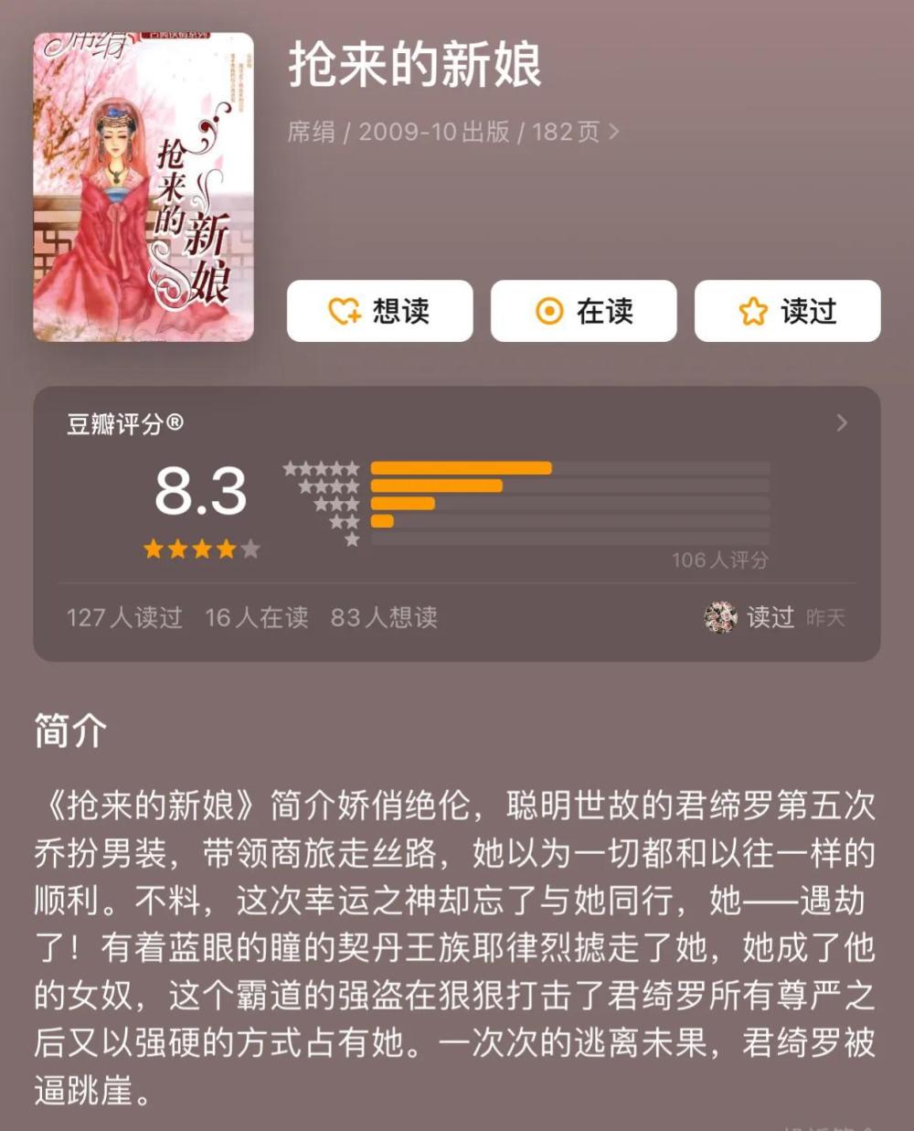 席绢作为湾湾著名的言情小说家,虽说不像琼瑶那般家喻户晓,却也占据了不少人的青春。