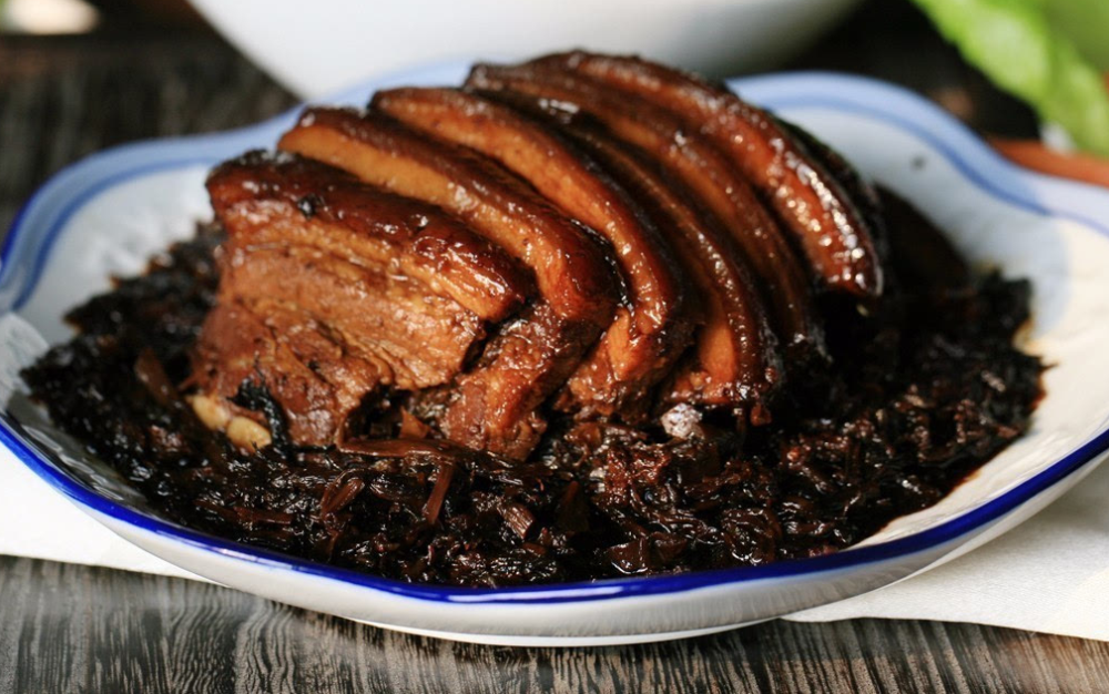 做好的盐菜扣肉看起来颜色油亮,味道诱人,吃起来也是肥而不腻,十分下饭。