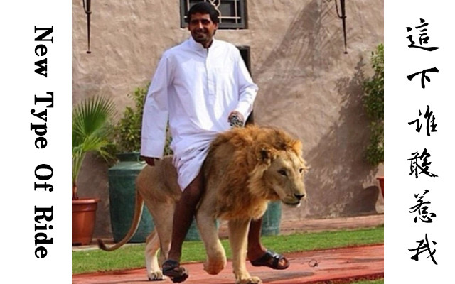 迪拜的人都是超级漂亮豪华的代步轿车,但是这个超级富豪在迪拜骑着是他的宠物狮子,简直是比熏悟空还凶!迪拜的当地人一定非常嫉妒这家伙,因为他在上班途中基本都是专车专道。