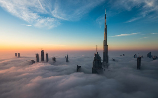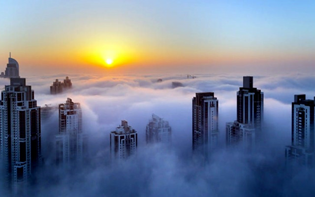 迪拜之晨就是天宫一般,“头在云中,脚在地上。”