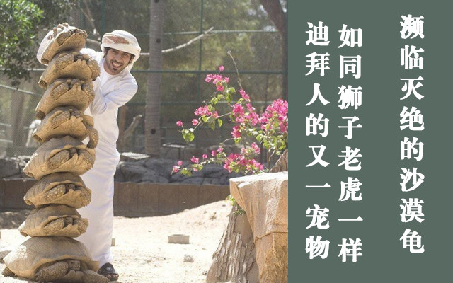 迪拜人对收集濒临灭绝的物种有着浓厚的兴趣,除了宠物狮子和老虎,濒临灭绝、极为罕见的动物沙漠龟,也是他们所爱。