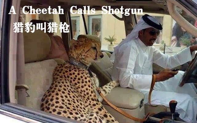 迪拜居民决定让他的宠物猎豹骑猎枪,将事情发挥到极致,虽然猎豹没有在非洲平原上漫游,但他似乎对副驾驶座位很满意。