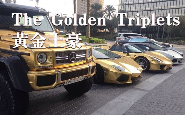 这种豪车在迪拜开高档车的停车场司空见惯,这个特别的黄金三胞胎,因为三辆车都是镀金的,镀金汽车独特的品相,告诉你主人的豪横。