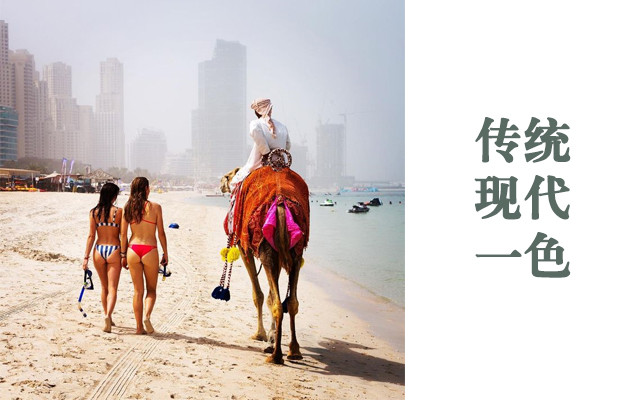 由于游客众多,迪拜是丰富的古老传统甚至新现代文化的大熔炉,上面这张照片是所有文化融合在一起的主要描绘,一个男人穿着传统的阿联酋服装,而女孩们则穿着比基尼摇摆不定。