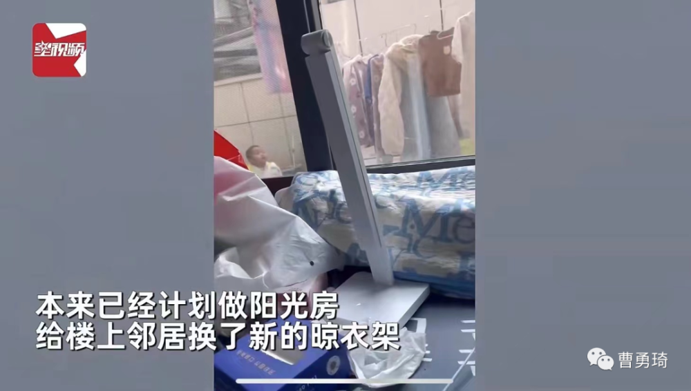 女子表示,原本自己家和邻居家都是在一楼的院子里晾晒衣服被子的。后来,由于自己想在院子里盖一个阳光房,于是,她便给楼上邻居新换了一个晾衣架。谁料,自己家的阳光房刚刚搭上架子,就被楼上给举报了。