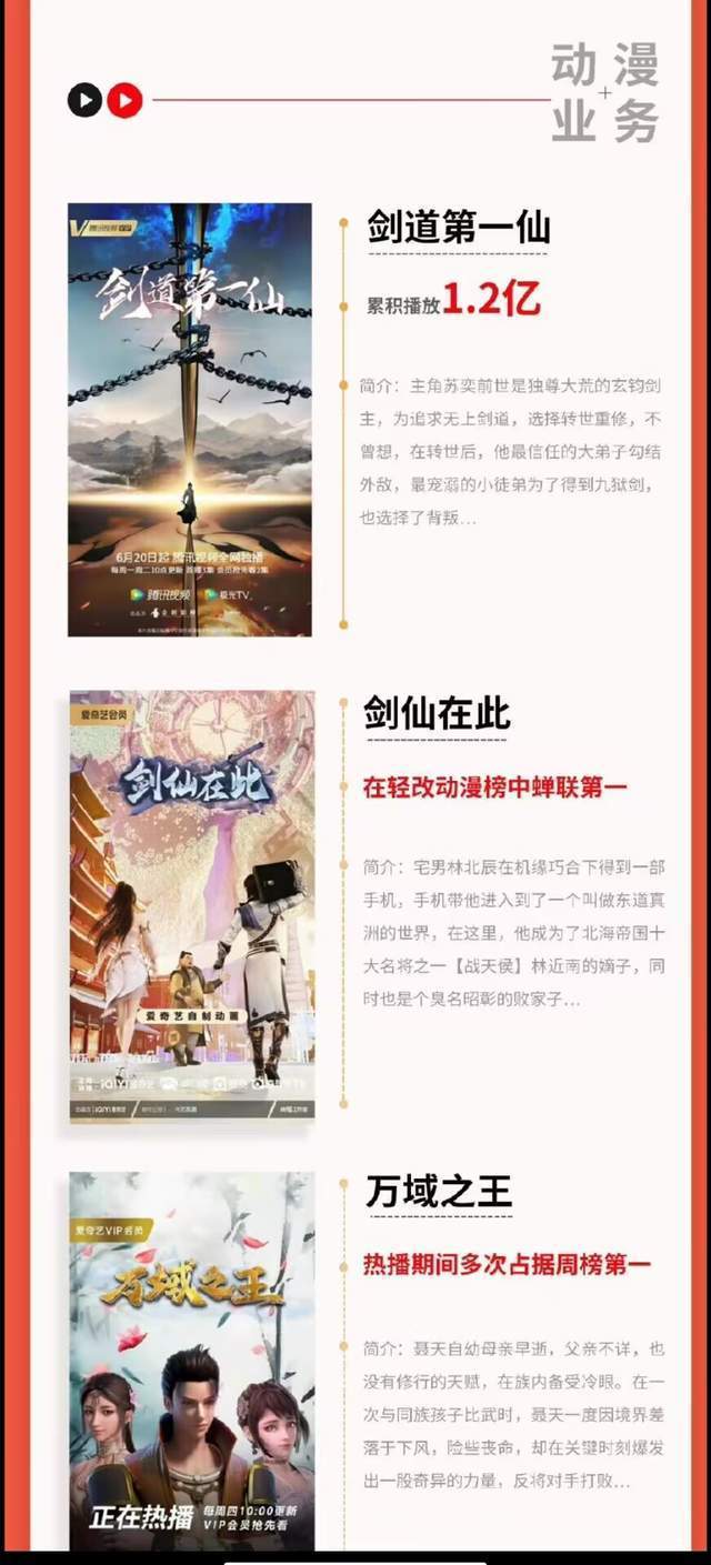 在有声方面《剑仙在此》播放9.41亿,《我有一剑》播放4亿,《太荒吞天决》播放3.29亿,《不让江山》播放1.84亿。