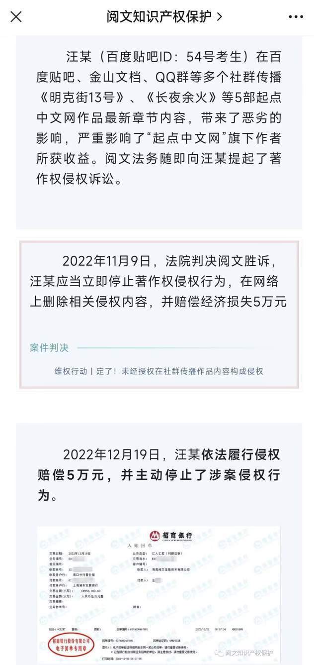 十、盗版起点5本热门小说被判赔款5万的那位老哥目前已汇款