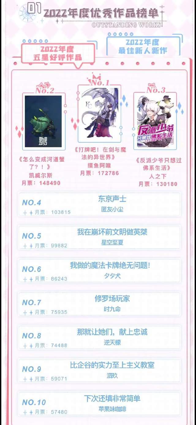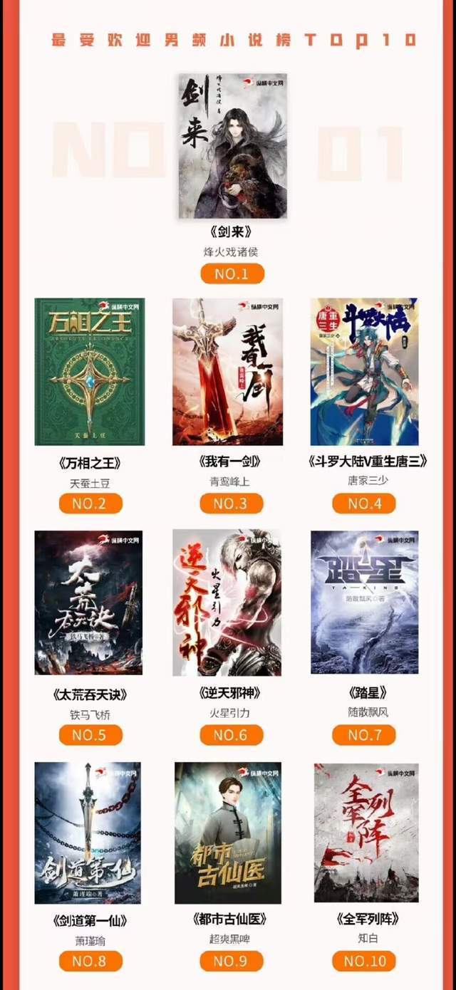 最后是他们22年的年度前十小说,都挺经典的,算是纵横目前还在连载的质量最好的一批书了。就是斗罗大陆五这答辩玩意为什么会在里面,纵横的读者按理说都是老白多,斗五这种书应该是带都不带看的,这还能排到第四,纵横这舔的......