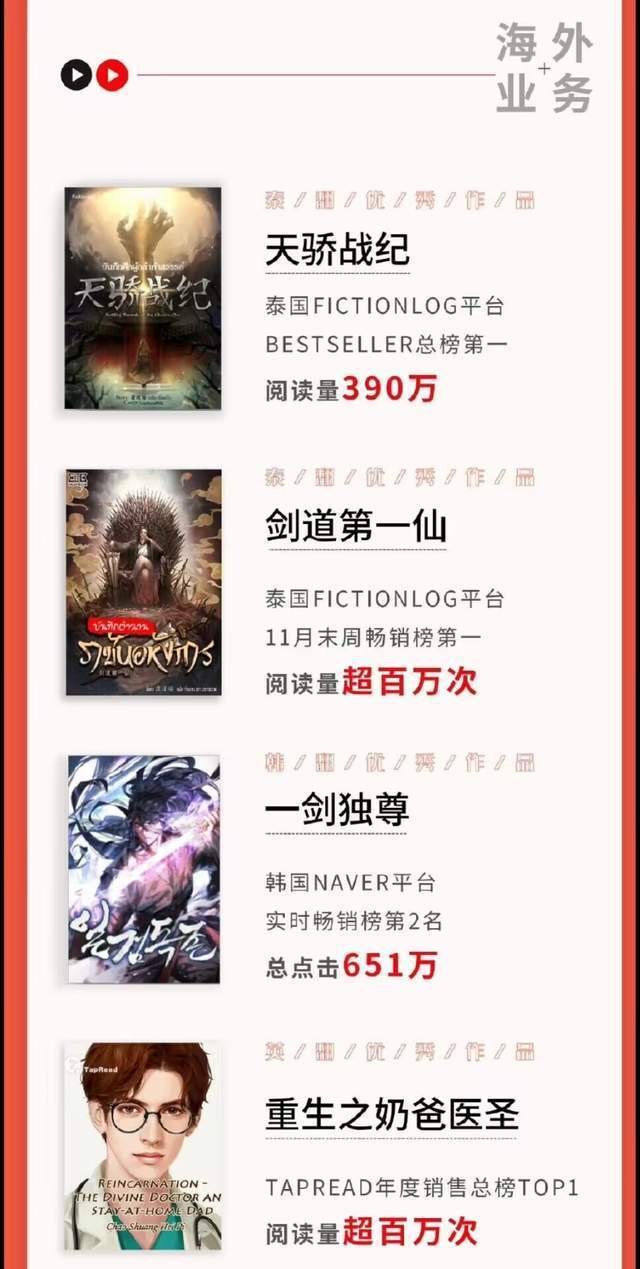 他们的海外业务刚启动没几年,成绩勉勉强强,虽然感觉吹的很牛,但实际也就那样,起点国际点击榜前百的书数据都比他列的这些好。那本《重生之奶爸医圣》所在的网站tapread就是纵横自己的海外网文站,不过刚开没几年,还没啥人。(j见下图)