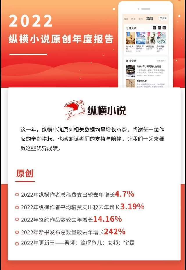 在版权运营上,纵横2022年共有496个项目进行了ip开发与改编,同比2021年增长54.5%