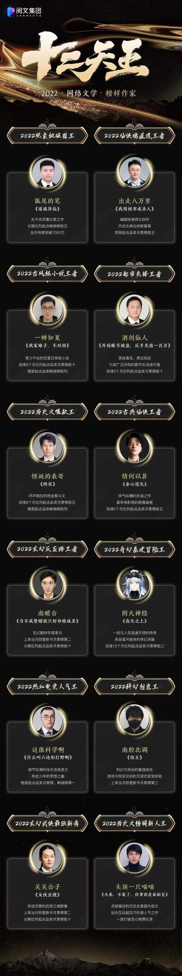六、阅文2022年十二天王出炉