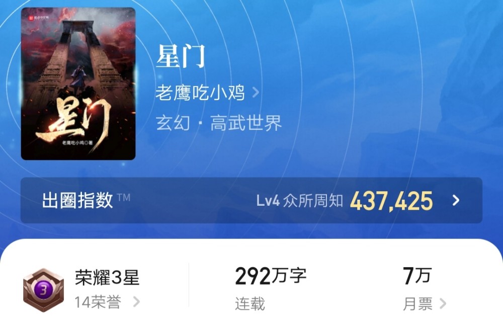 手机访问:wap.265xx.com《星门》力压《从红月开始》重夺月票榜冠军,老鹰的三部曲不容错过
