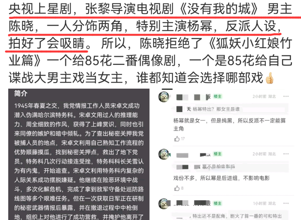 除了电影,有传杨幂接下来还将和陈晓合作拍摄张黎导演的央视上星剧《没有我的城》,但杨幂只是特别主演,她饰演的也是一个反派角色,但目前两部戏的开机时间还未定。