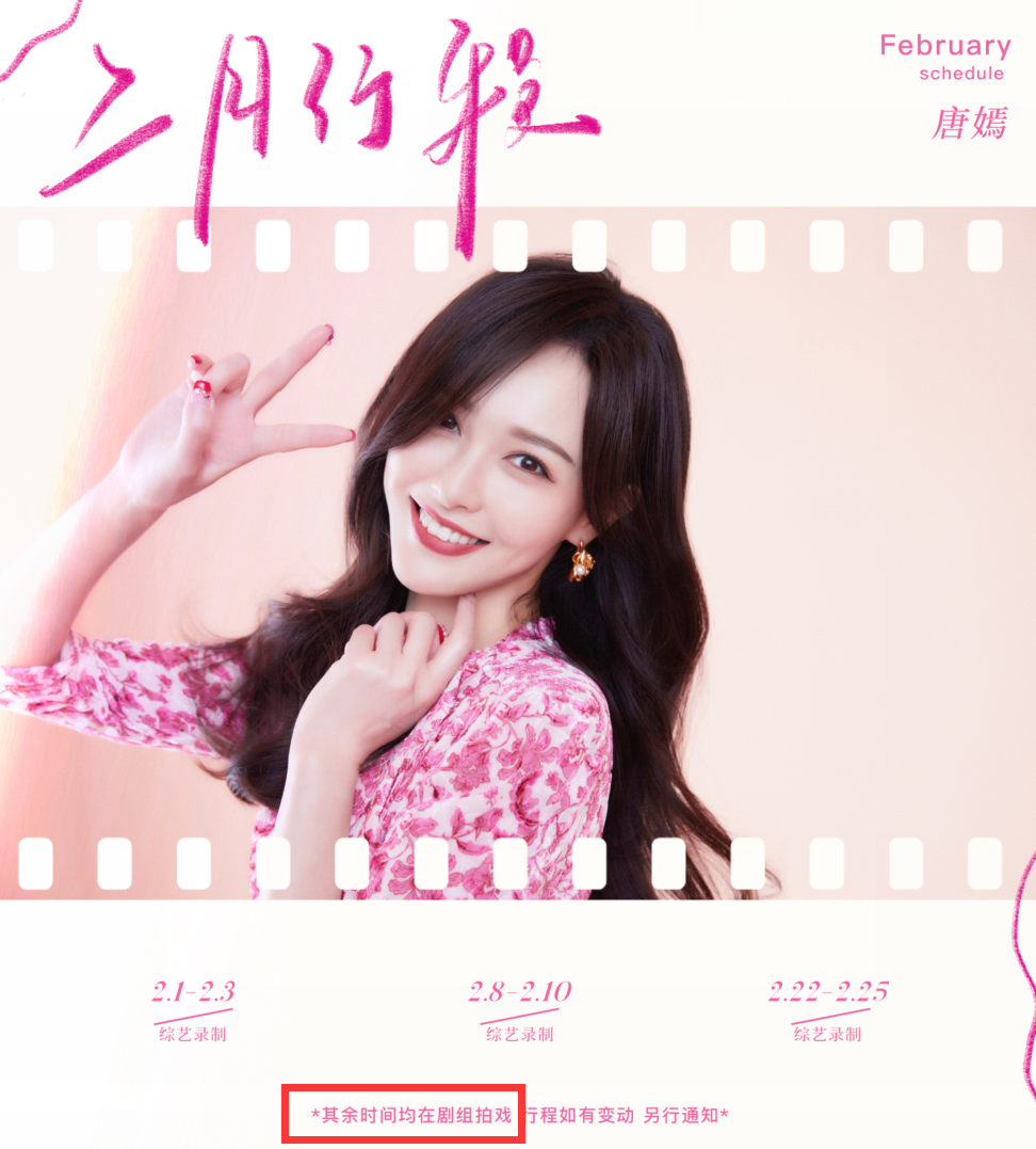 工作室晒的2月行程表中显示,除了录制综艺,这个月其余时间她都将在剧组拍戏,还没等大家欢呼雀跃就被告知她是要进组补拍《繁花》。