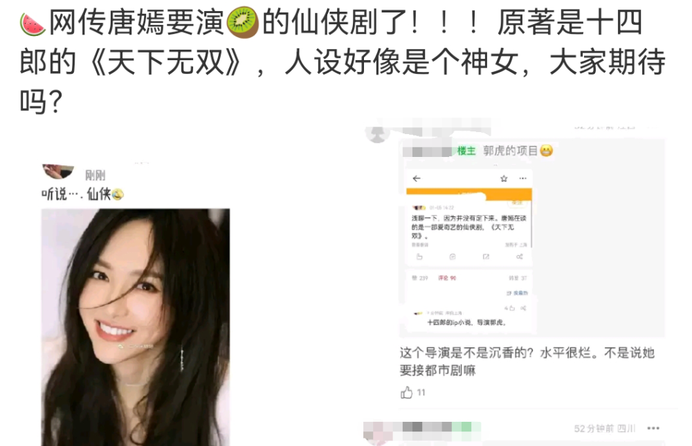 当然前段时间也网传唐嫣要拍一部仙侠剧《天下无双》,但这个瓜挺假的,因为女主年龄很小,唐嫣快40了,若是前几年她还可能接演,现在这个年纪再演仙侠古偶,怕是有损她的口碑,这部戏也没那么快开拍。