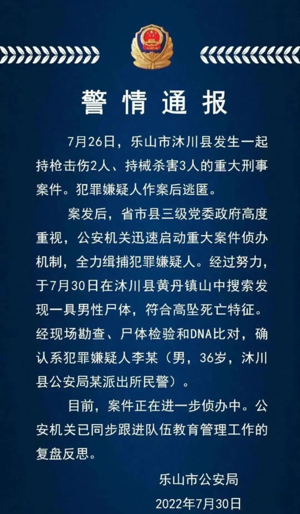 2022年7月26日,四川省乐山市沐川县发生一起枪杀案。
