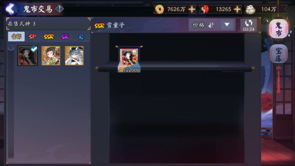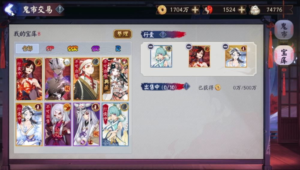 宝库中多余的【极】式神还可以放到鬼市中进行交易。